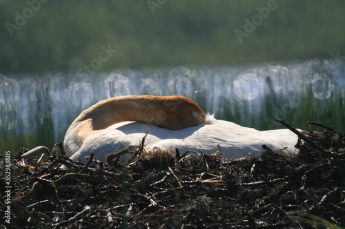 © adventure, Fototapeta premium Whooper swan (Cygnus cygnus), also known as the common swan captured in the North of Belarus