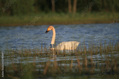 © adventure, Fototapeta premium Whooper swan (Cygnus cygnus), also known as the common swan captured in the North of Belarus