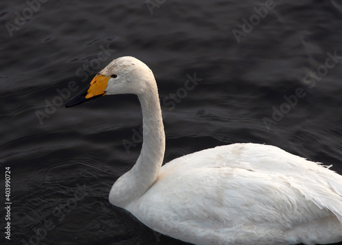 © ArhSib, Naklejka premium Whooper Swan on the water close-up