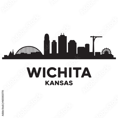 © Nargis, Fototapeta premium Wichita skyline horizontal banner. Wichita, Kansas. Vector template for your design. Vector black silhouette. with white background
