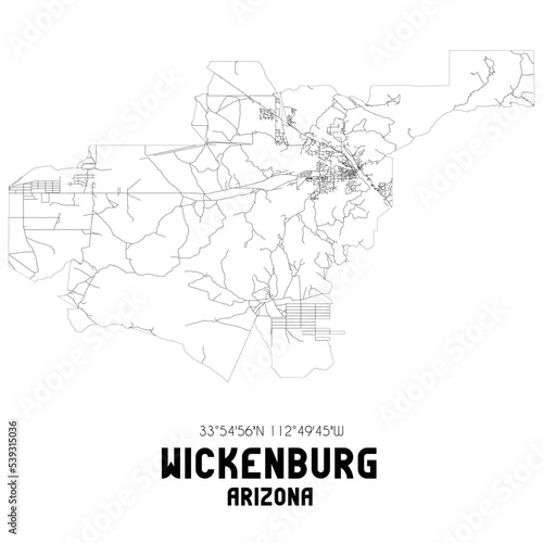 Fototapeta premium Wickenburg Arizona. US street map with black and white lines.