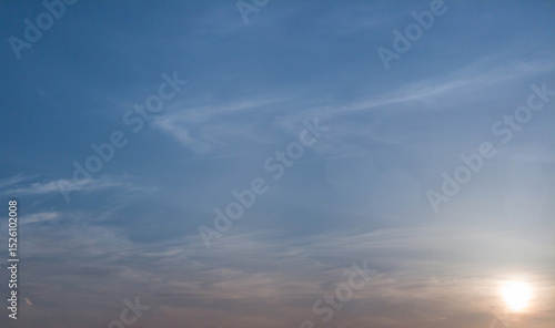 © sutthichai, Naklejka premium Wide and large of Sky background pattern with cloud. clear sky scenery environment and white sunlight of below.