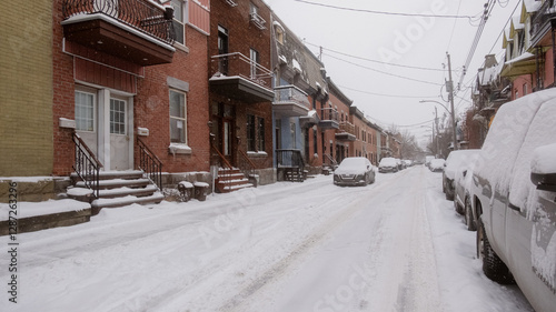 © jchtgr, Fototapeta premium Wide angle of a Montreal snow-covered street