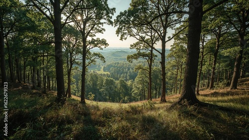 © TheWaterMeloonProjec, Naklejka premium Wide-angle shot capturing rich forest landscape
