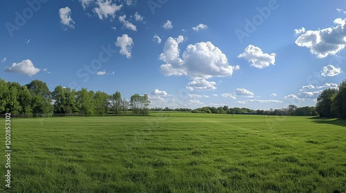 © Chandara, Obraz premium Wide-angle shot of a rural agricultural field during the growing season.