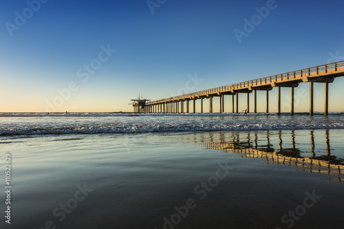 Obraz premium Wide angle shot of Scripps Pier with reflection during sunset in La Jolla,...