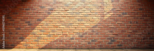 Fototapeta premium Wide-angle view of a red brick wall with rectangular bricks in a rustic natural setting, wall, construction, design