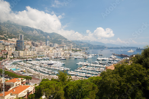 © FomaA, Fototapeta premium Wide angle view on the city of Monaco and its harbour. Monte Carlo