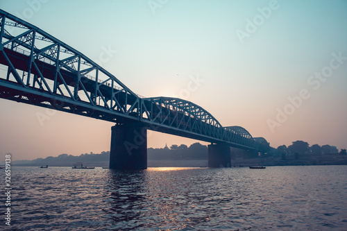 Naklejka premium Wide angle views of a portion of the indian railway bridge of Varanasi on the...
