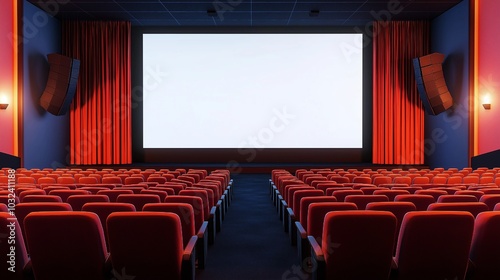 Fototapeta premium Wide format and a row of seats mockup of a stage and blank screen