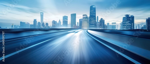 Fototapeta premium wide futuristic road going through a tunnel, futuristic city skyline