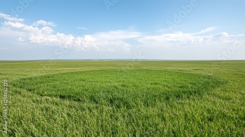 © tugkiara, Fototapeta premium Wide grassy plain under a partly cloudy sky. Possible use for nature backgrounds