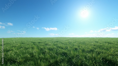 © song, Naklejka premium Wide Green Field Under Clear Blue Sky