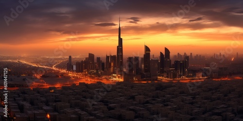 © Ecleposs, Fototapeta premium Wide Landscape of Arabian City - Generative AI Illustration