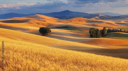 © ArtWork9, Obraz premium Wide landscape with golden wheat fields