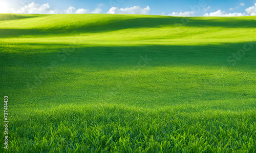 Fototapeta premium Wide lawn trimmed with precision under a blue sunny sky