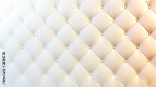 © Nenone, Fototapeta premium Wide Light white luxury upholstery sofa texture background, Close-up of white tufted upholstery with buttons.