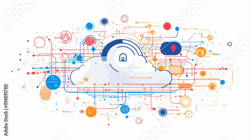 © Mortin, Fototapeta premium Wide Line Connection Server Data Loading in Colorful Cloud Environment