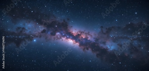 © Dreamstory Studio, Naklejka premium Wide Milky Way Galaxy Panorama with Colorful Nebula and Deep Space Sky