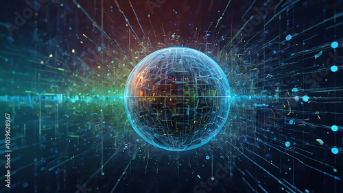 © Sudarshana, Obraz premium wide modern futuristic space, imagine of virtual brain processor control unit with high end technology ambience in blue background