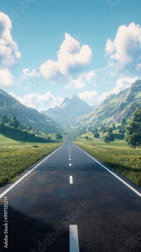© BG_Illustrations, Naklejka premium Wide open road leading into the horizon with clear blue sky and white clouds