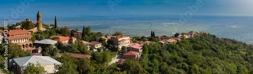 © bongiozzo, Obraz premium Wide panorama of Sighnaghi and Alazani valley from the hotel Kabadoni, Sighnaghi, Georgia