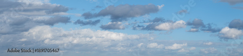 © Andreas, Obraz premium Wide panoramic blue sky with scattered clouds