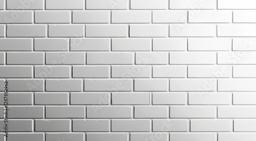 Fototapeta premium Wide panoramic view of a smooth, flat white brick wall with evenly spaced bricks perfect for modern, clean and minimal backgrounds. Generative AI