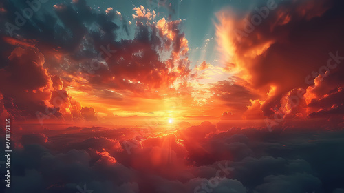 © ak159715, Naklejka premium Wide panoramic view of the sunset sky with dark clouds