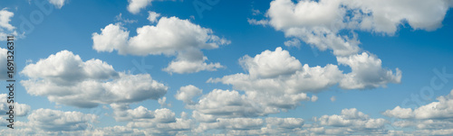 © Aleksandr Matveev, Fototapeta premium wide panorams of heaven sky is blue with many clouds. clouds are scattered throughout the sky and are of various sizes