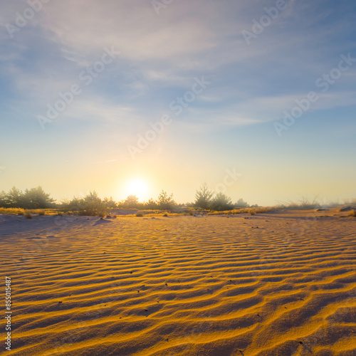 Fototapeta premium wide sandy desert at the dramatic sunset