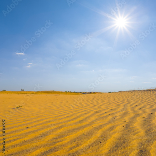 © Yuriy Kulik, Naklejka premium wide sandy desert at the summer sunny day