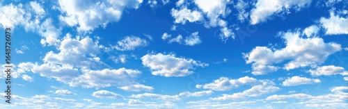 Fototapeta premium Wide shot of a bright, clear blue sky filled with scattered white clouds