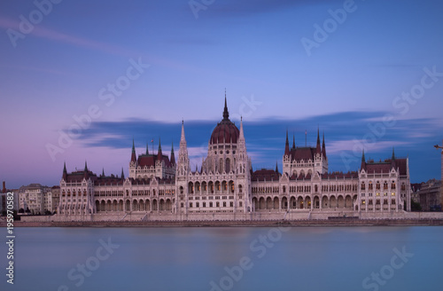© Jason Row Photo, Fototapeta premium Wide shot of the Hungarian Parliament at twilight