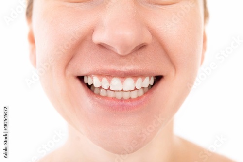 © Ivan Traimak, Obraz premium Wide smile with teeth close up, young woman portrait