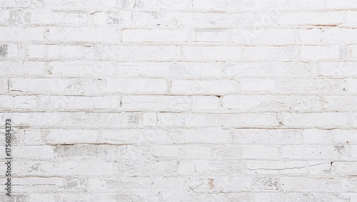 © AkuAku, Fototapeta premium Wide textured backdrop of aged white bricks