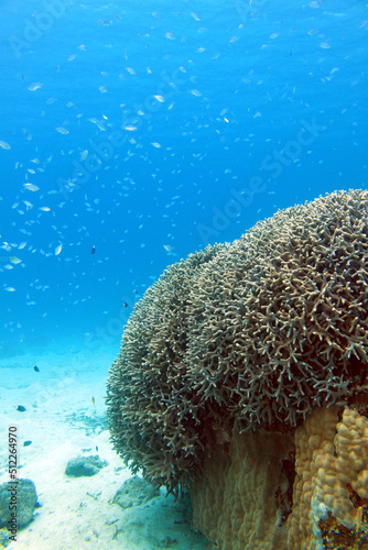 Obraz premium Wide underwater view of coral reef and tropical fish