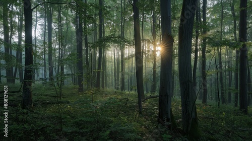 © bersch28, Naklejka premium Wide view of a forest at dawn.