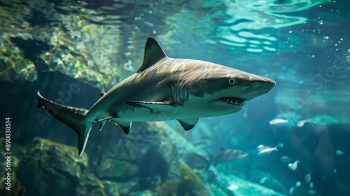 © bersch28, Naklejka premium Wide view of a shark swimming in the ocean.