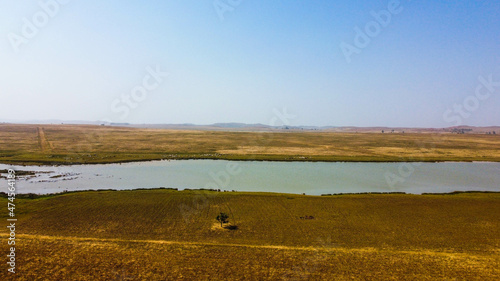 © Terver, Obraz premium Wide view of Farm landscape with a lake