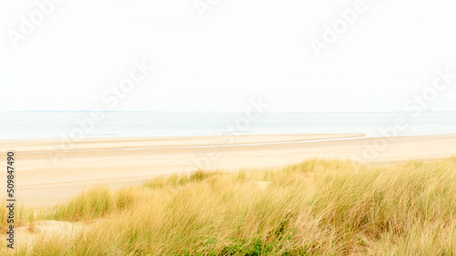 Fototapeta premium Wide wild sandy beach with grass hills landscape