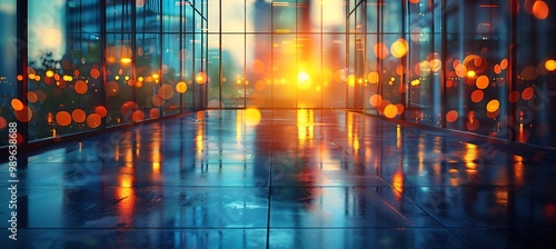 Naklejka premium Wideangle blurry view of modern office space with minimalist decor captured...