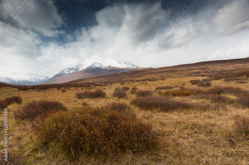 © Konstantin Maslak, Naklejka premium widely field, mountain and cloud in dramatic
