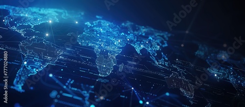 Fototapeta premium Widescreen Digital World Map: Illuminated Connections and Cyber Networks...