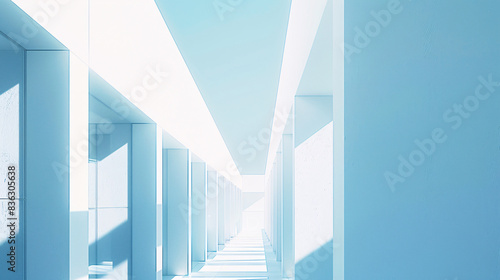 Fototapeta premium Widescreen minimalistic architecture, white and light blue, featuring unique...