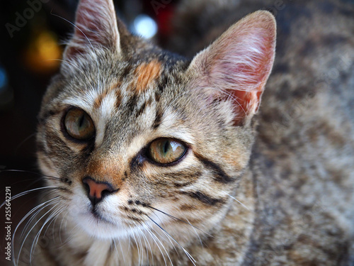 Fototapeta premium Widok ładny brązowy i biały kot płci żeńskiej