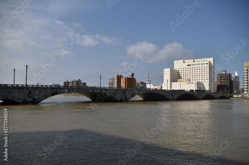 © Yujun, Naklejka premium Widok na centrum miasta Niigata w Japonii