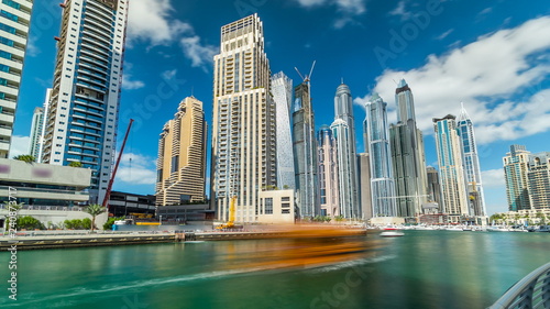 © HyperlapsePro, Fototapeta premium Widok na Dubai Marina Towers i kanał w Dubaju timelapse hyperlapse