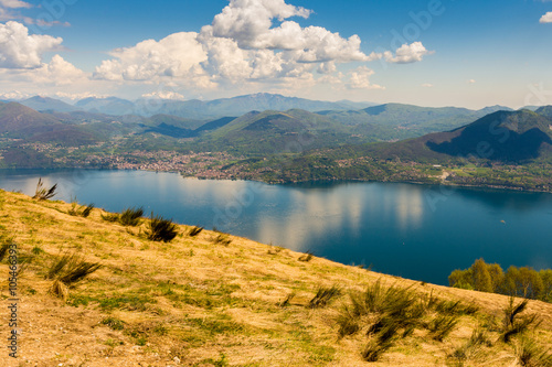 Naklejka premium Widok na jezioro Maggiore i południowe Alpy, północne Włochy