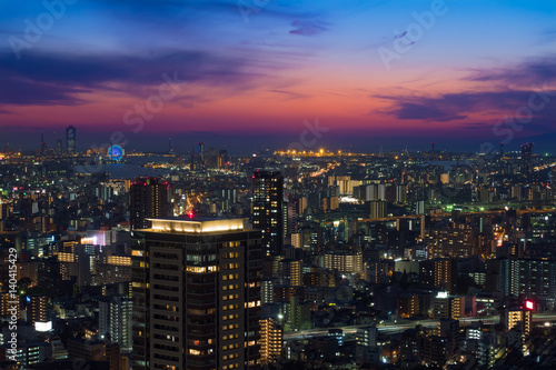 Fototapeta premium Widok na miasto Osaka z UMEDA Sky Building w Zmierzchu